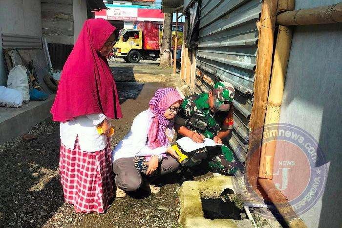 Babinsa Koramil 02 Nguter Dim 0726/Sukoharjo Dampingi Bidan desa dan Kader Kesehatan desa Laksanakan Grebeg Jentik
