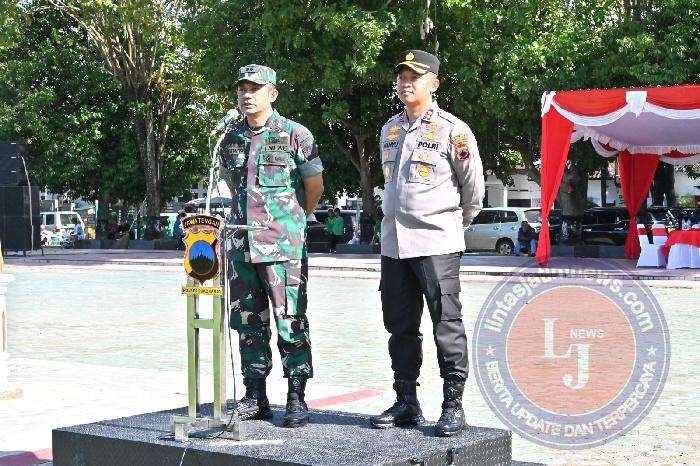 SUKOHARJO lintasjatimnews.com – Letkol Czi Slamet Riyadi, S.E (Dandim 0726/Sukoharjo) dan AKBP Wahyu Nugroho S, S.I.K., M.PICT., M.Krim (Kapolres Sukoharjo) mengambil Apel Sinergitas TNI-Polri di Alun-Alun Satya Negara Sukoharjo. Apel gelar sinergitas TNI-Polri dilanjutkan dengan olah raga bersama dengan melaksanakan jogging dengan rute di seputaran kota Sukoharjo dan patroli bersama, Selasa (07/03/23).