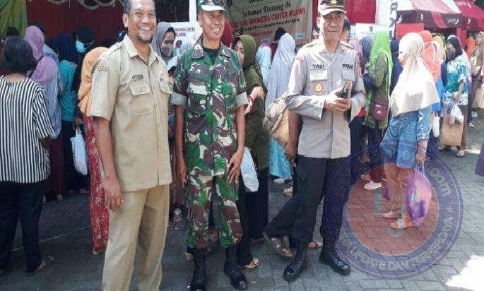 NGAWI lintasjatimnews.com – Babinsa Koramil 0805/01 Kota Kodim 0805/Ngawi Serda Saiin Masduki dan Serda Basori Mengawasi Serta Pendampingan Gelar Pasar Pangan Murah Berkualitas Tahun 20223 yang dilaksanakan di Balai Kel.Margomulyo Kecamatan Ngawi, Kabupaten Ngawi, Selasa (07/03/2023).