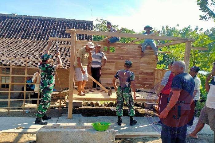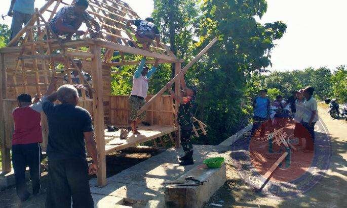 NGAWI lintasjatimnews.com – Anggota Posramil Pitu Kodim 0805/Ngawi Serka Eko Priyanto bersama warga masyarakat melakukan kerja bakti membuat pos keamanan lingkungan (Pos Kamling) di Desa Ngancar Kecamatan Pitu, Selasa (07/03/2023).