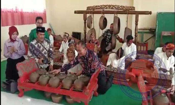 Munif maupun Chusnu sangat menikmati alunan gamelan yang dimainkan anak-anak SMP Negeri 2 Ngimbang. Bahkan kedua beliau sempat mencoba memainkan memukul gamelan.