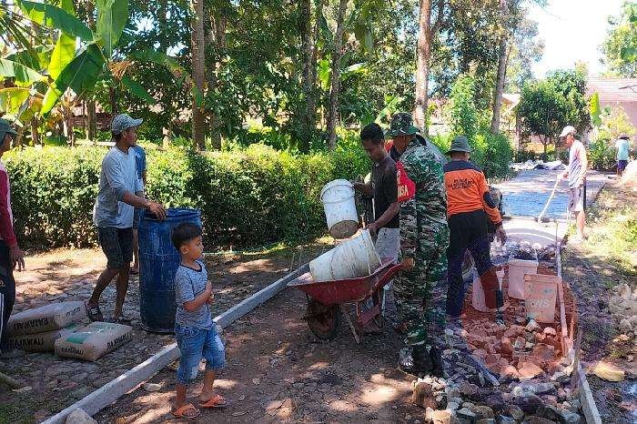 WONOGIRI lintasjatimnews.com – Untuk memudahkan aktivitas masyarakat, Babinsa Mlokomanis Wetan Koramil 03/Ngadirojo Serka Maryadi, membantu pelaksanaan kegiatan pengecoran jalan (rabat beton) di desa binaannya, Sabtu (11/3/23).