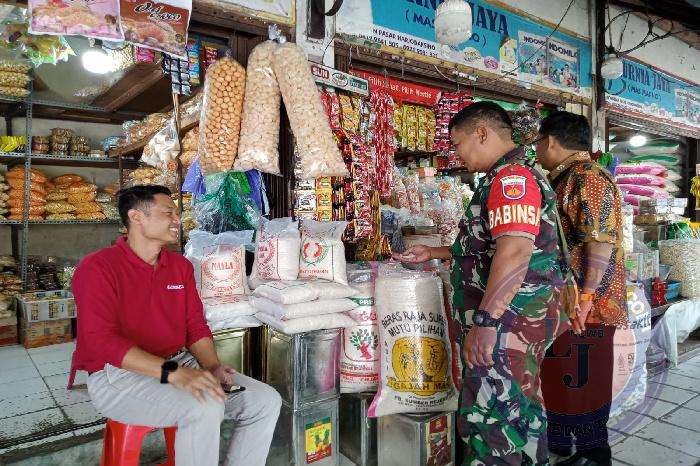 SURAKARTA lintasjatimnews.com – Babinsa Kelurahan Danukusuman Koramil 03/Serengan Kodim 0735 Surakarta Sertu Rochani bersama Bapak Listianto (Lurah Pasar) memantau perkembangan harga Sembako dipasar hardjodaksino Jln. Yos Sudarso Danukusuman Serengan Kota Surakarta, (13/03/2023)