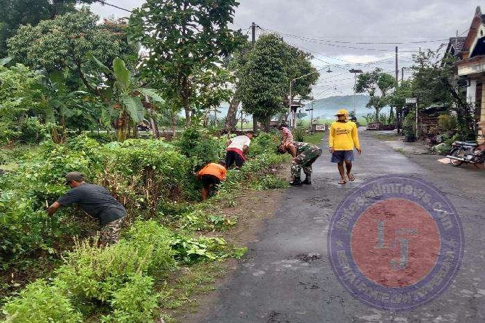 Babinsa Kodim 0802/Ponorogo Bersama Warga Desa Binaan Ramai – Ramai Bersihkan Selokan