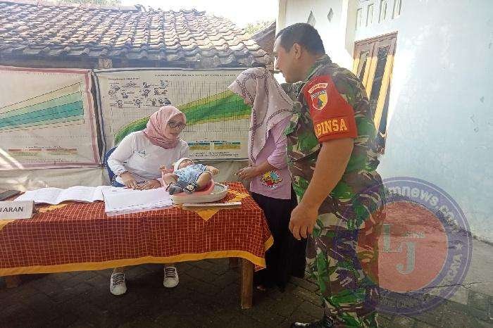 NGAWI lintasjatimnews.com – Anggota Koramil Ngawi Kota Kodim 0805/Ngawi Serda Hartono melaksanakan pendampingan kegiatan Posyandu Balita bertempat di Desa Grudo Kecamatan Ngawi Kota,Rabu (15/03/2023).
