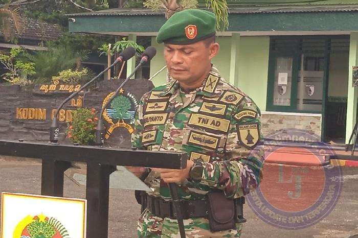 PACITAN lintasjatimnews.com – Kali ini pada momentum upacara 17 Maret 2023, Komandan Kodim 0801/Pacitan Letkol Inf Roliyanto S.I.P.,M.I.P, bertindak sebagai Inspektur upacara, yang berlangsung di lapangan upacara Makodim Jl. Letjen Suprapto No. 42 Pacitan, Jumat (17/03/2023).