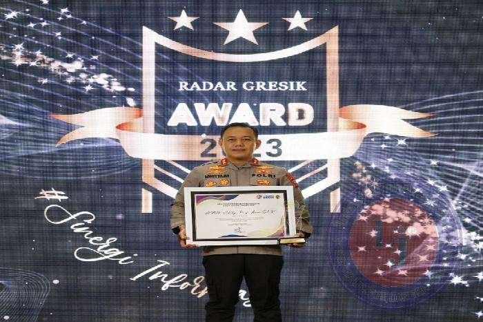 Kapolres Gresik AKBP Adhitya Panji Anom menyampaikan ucapan terima kasih kepada Radar Gresik yang telah memberikan perhargaan Radar Gresik Award 2023. Kapolres mengatakan penghargaan ini sebagai pemacu semangat untuk meningkatkan pelayanan.