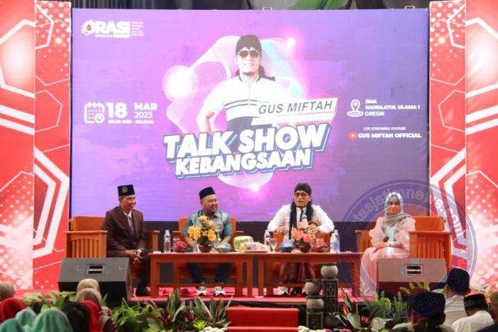 GRESIK lintasjatimnews.com – Upaya menangkal radikalisme pada generasi muda terus dilakukan. Kali ini, upaya diinisiasi lewat kajian agama dan kebangsaan. Bersama Bupati Fandi Akhmad Yani, ulama dengan nama lengkap Miftah Maulana Habiburrahman ini hadir untuk ngobrol bareng tentang kebangsaan bersama para pelajar di SMA Nahdlatul Ulama Satu, di jalan Raden santri,kemuteran,pakelingan Gresik. Sabtu (18/03/2023).