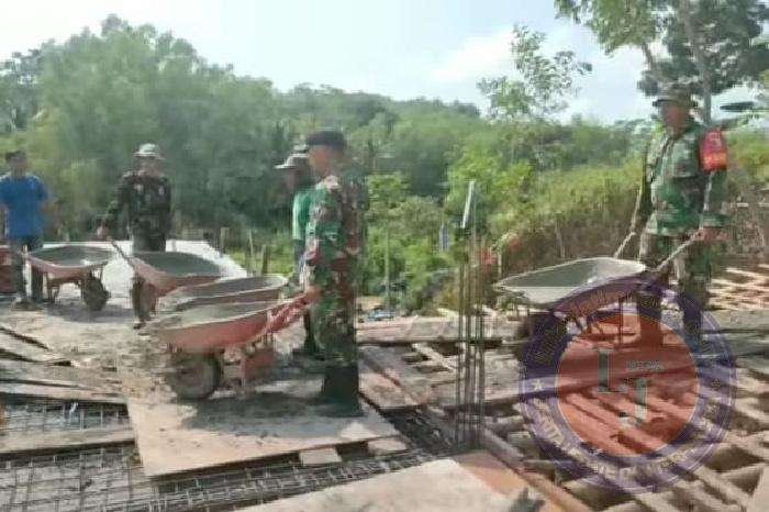 PACITAN lintasjatimnews.com – Dalam rangka mempererat kemanunggalan TNI dengan rakyat, Babinsa Koramil 0801/12 Pringkuku Kodim 0801/Pacitan, membantu pelaksanaan pengecoran gedung Madrasah Boarding School (MBS) yang berada di Dusun Gondang, Desa Pringkuku, Kec. Pringkuku Kab. Pacitan, Senin (20/03/2023).