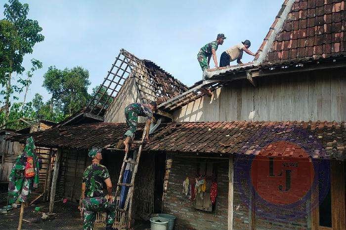 Danramil 14/Bringin Kapten Inf Priyono mengatakan karya bakti ini dilaksanakan oleh Personel Koramil di beberapa desa diwilayah yang terdampak hujan disertai angin yang menyebabkan adanya kerusakan rumah warga.