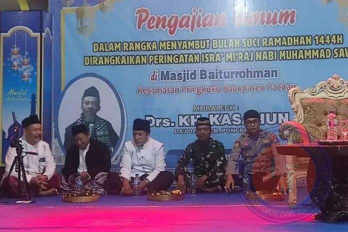 PACITAN lintasjatimnews.com – Dalam rangka menyambut datangnya bulan suci ramadhan 1444 H tahun 2023, Pelda Lilik Susanto Bati Tuud Koramil 0801/12 Pringkuku Kodim 0801/Pacitan menghadiri pengajian umum oleh Mubaligh Drs. KH Khasanun dari Kab. Ponorogo, yang berlangsung di Masjid Baiturrohman Kec. Pringkuku Kab. Pacitan, Senin (20/03/2023) Malam.