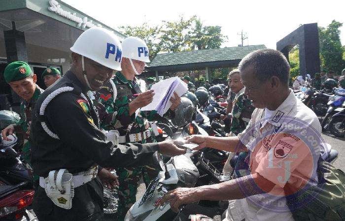 Lettu Cpm Sugiono menyampaikan selama kita masih menjadi TNI atau PNS agar menjauhi pelanggaran sekecil apapun termasuk saat bekendara, Kelengkapan fisik kendaraan seperti spion, rem, lampu sein, lampu rem, kondisi ban harus selalu dalam kondisi baik, memakai helm standar dan surat-surat kelengkapan berkendara seperti SIM, STNK, KTA, KTP harus ada dan selalu dibawa.