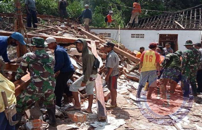 Danramil menambahkan, setelah sepekan tertimpa longsor pada kesempatan ini, pihaknya bersama jajaran Forkopincam dan relawan, serta warga masyarakat setempat, melaksanakan karya bakti dengan membersihkan material rumah yang roboh maupun material longsoran berupa tanah.