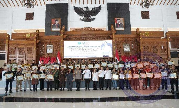 TUBAN lintasjatimnews.com – Bupati Tuban Aditya Halindra Faridzky, SE. menyerahkan Penghargaan Keselamatan dan Kesehatan Kerja (K3) dari Gubernur Jawa Timur kepada 39 perusahaan/BUMN/BUMD di Kabupaten Tuban, Rabu (29/03/2023). Bertempat di Pendopo Kridha Manunggal, penyerahan penghargaan turut dihadiri Forkopimda Tuban, Sekda Tuban, Budi Wiyana, Perwakilan Dinas Tenaga Kerja dan Transmigrasi Jawa Timur, Hasan Mangale, dan pimpinan OPD terkait.