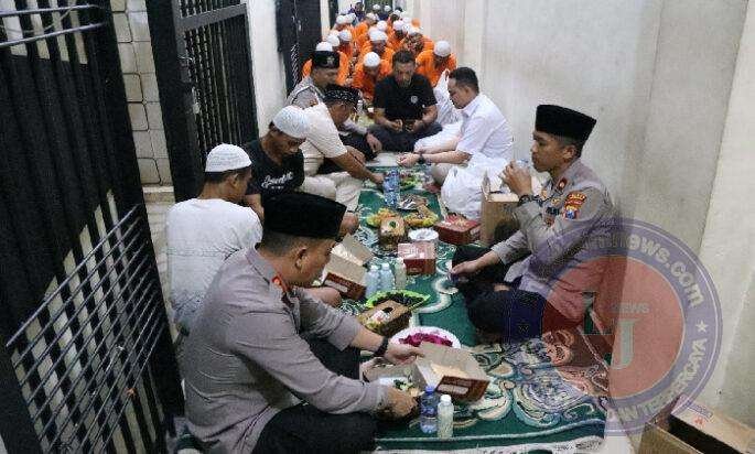 GRESIK lintasjatimnews.com – Berkah Ramadan 1444 Hijriah, Kapolres Gresik AKBP Adhitya Panji Anom buka bersama para tahanan di rumah tahanan Polres Gresik. Kapolres beserta jajaran juga membagikan sajian makanan dan minuman kepada para tahanan untuk persiapan berbuka puasa. Rabu (29-03-2023)