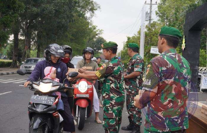 KULON PROGO lintasjatimnews.com – Di bulan suci Ramadhan 1444 H. Kodim 0731/Kulon Progo membagikan takjil untuk berbuka puasa kepada para pengguna jalan yang melintas di depan Makodim, Kamis kemarin sore.