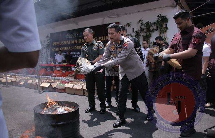 Setelah menggelar konferensi pers hasil Operasi Pekat Semeru 2023, Polresta Malang Kota bersama Forkopimda Kota Malang dan instansi terkait melanjutkan kegiatan dengan memusnahkan barang bukti yang disaksikan oleh seluruh awak media.