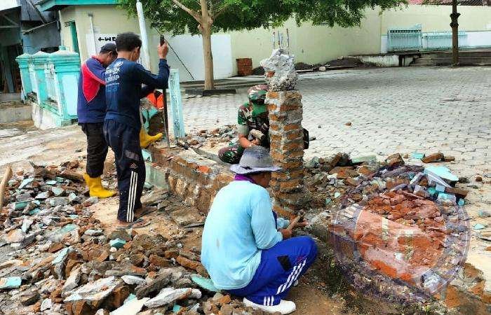 Sabtu(1/4/23), Babinsa Desa Gumiwang Lor, Koramil 10/Wuryantoro Serda Dwiyanto, bersama dengan pengurus Masjid dan warga sekitar melaksanakan karya bakti pembongkaran dan Pembuatan pagar Masjid Al-Rohman yang berada di RT 02/05 DesaGumiwang Lor, Kecamatan Wuryantoro.