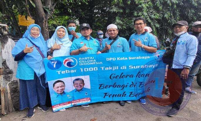 SURABAYA lintasjatimnews.com – Ramadan 1444 H, Kamis 6/4/2023, DPD Gelora Surabaya melakukan giat tebar 1000 takjil. Kegiatan tersebut dengan kepanitiaan dari bidang perempuan DPD Gelora Surabaya, Hj Endang Ismaya sebagai ketuanya.