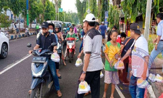 Dikatakannya, adapun menu berbuka puasa yang dibagi-bagikan ke masyarakat antara lain, nasi kotak kue serta air botol.