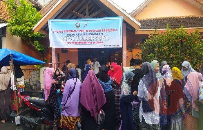 LAMONGAN lintasjatimnews – SMP Muhammadiyah 17 Laren mengadakan Bazar Kuliner Siswa sebagai implementasi Kurikulum Merdeka dalam kegiatan Projek Penguatan Profil Pelajar Pancasila. Tema kewirausahaan, bazar kuliner siswa dilaksanakan bertempat di lokasi Pasar Pon desa Keduyung kecamatan Laren kabupaten Lamongan, Sabtu (8/4/2023)