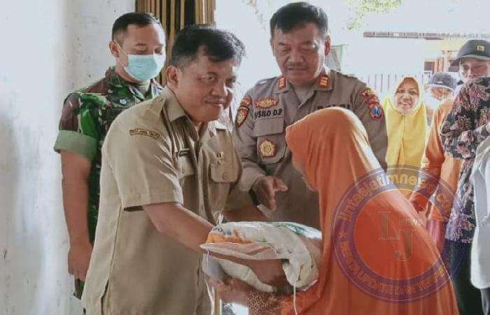 Tingkatkan Kesejahteraan, Babinsa Koramil 0801/10 Punung Dampingi Penyaluran Bantuan Beras