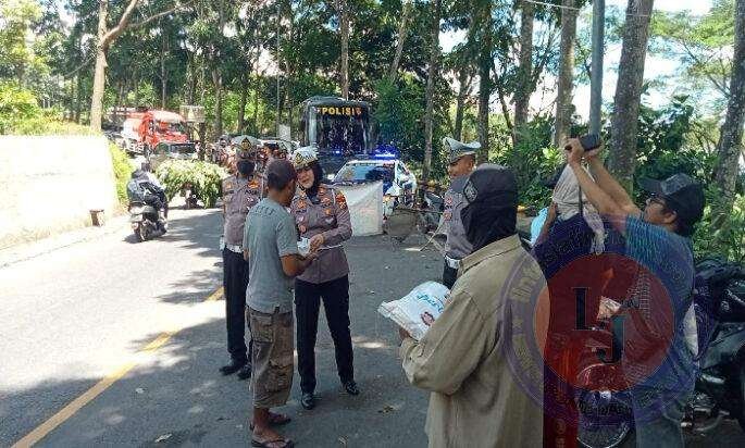 JEMBER lintasjatimnews.com – Jelang Idul Fitri, Polres Jember melalui Satuan Lalu Lintas Polres Jember memberikan edukasi keselamatan berlalulintas sambil berbagi sembako.