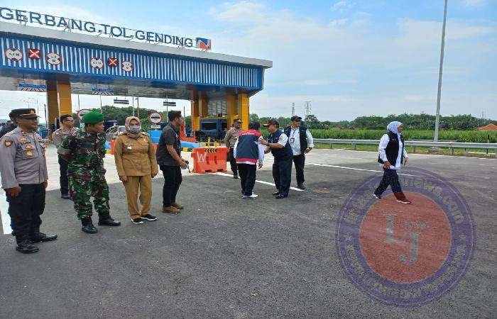 PROBOLINGGO lintasjatimnews.com – Koramil 0820/19 Gending bersama jajaran muspika setempat ikut hadir untuk menyambut kunjungan Gubenur Jawa Timur Khofifah Indar Parawansa yang melakukan pengecekan jalan tol Probolinggo timur di exit tol Gending, Senin siang (10/4).