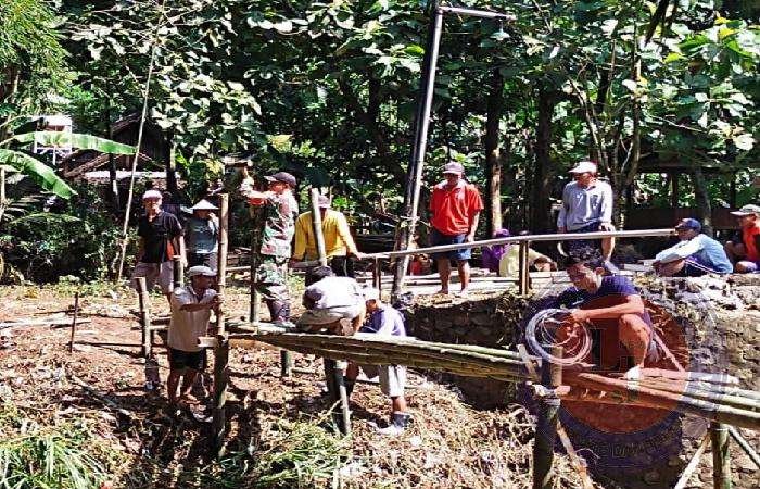 Untuk mengatasi hal tersebut Babinsa bersama warga berupaya membangun jembatan darurat atau sementara dari bambu dengan cara bergotong royong menggunakan alat seadanya sehingga akses jalan dapat dilalui.