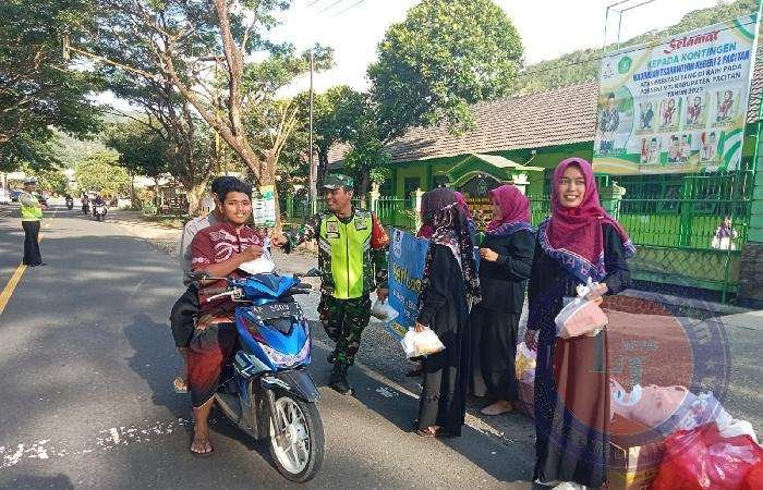 Kemudian, pada kesempatan ini dimanfaatkan oleh Babinsa Koramil 0801/02 Kebonagung Kodim 0801/Pacitan bersama anggota Polsek dan Organisasi Himpaudi untuk menggelar aksi sosial dengan membagikan Takjil di depan MTSN 2 Pacitan Desa Purwoasri, Kec. Kebonagung, Kab. Pacitan, Kamis (13/04/2023) Sore.