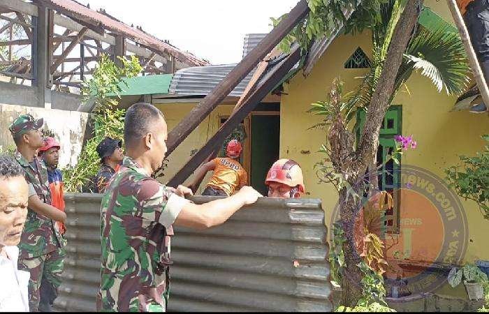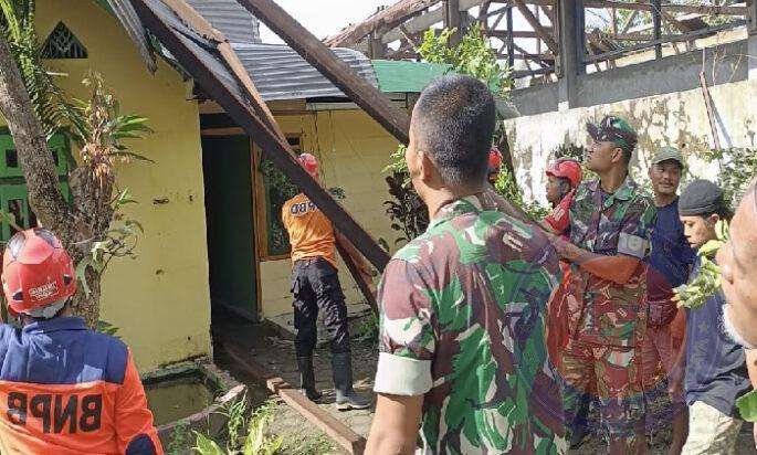 Dalam kegiatan ini Babinsa dan Warga bergotong royong merehap dan melakukan pembenahan Rumah dengan sasaran pembetulan dinding,dan atap rumah,serta penebangan kayu yang di anggap rawan ketika hujan angin.
