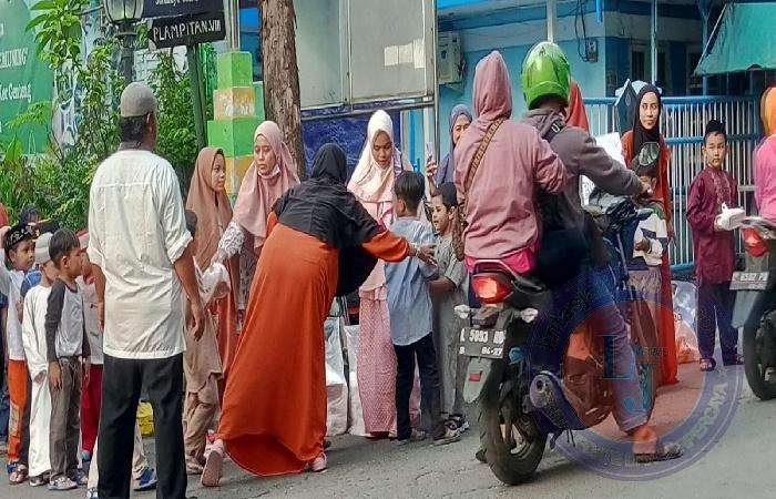 Rombongan anak anak TK yang keluar dari mulut gang VIII langsung berbaris dipinggir jalan dengan perintah bunda TK Aisyiyah tepat pukul 17.15 WIB takjil gratis dibagikan ke pengendara dengan dibantu ibunda masing masing. Dan dalam waktu 15 menit kotak takjil sudah habis dibagikan, dengan senang hati anak anak TK Aisyiyah Bustanul Athfal I sudah membagikan takjil gratis langsung kembali masuk kampung menuju sekolah yang berada di Plampitan VIII/17 kelurahan Peneleh, Kecamatan Genteng Surabaya.