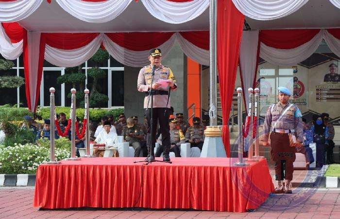 Alumnus Akpol 2002 ini mengatakan penindakan pelanggaran lalu lintas knalpot brong juga dimusnahkan hari ini. Puluhan knalpot brong ditumpuk di atas meja.