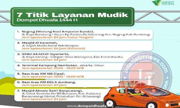 JAKARTA lintasjatimnews.com – Dompet Dhuafa pada tahun ini kembali membuka layanan pemudik sebagai upaya membantu kenyamanan serta mengakomodir para pemudik untuk tetap selamat hingga sampai tujuan. Adapun titik pelayanan mudik terpadu Dompet Dhuafa tahun 2023 terdapat 7 (tujuh) titik meliputi: