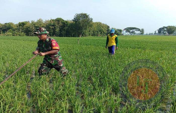Seperti halnya yang dilakukan Serka Rudi Hartono Babinsa Desa Dawung anggota Koramil 08/Sambirejo Kodim 0725/Sragen membantu penyiangan rumput pada tanaman padi di sawah milik Bapak Sudarno Dk. Nangsri Rt. 24 Ds. Dawung Kec. Sambirejo, Rabu ( 19/04/2023 )