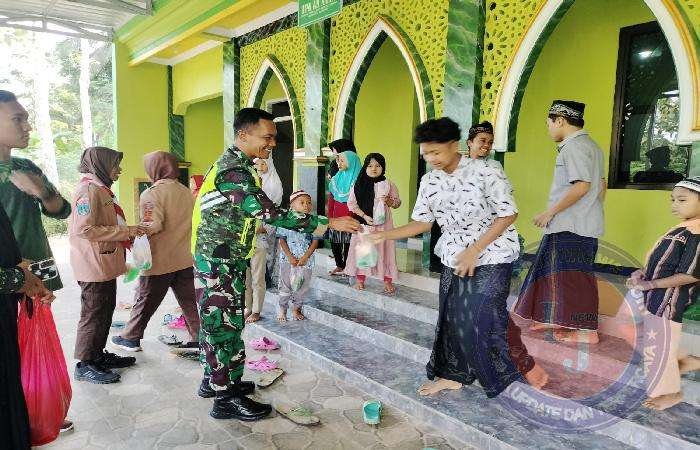 Pada kesempatan ini, Serda Basuki Rahmad Babinsa Koramil 0801/11 Donorojo Kodim 0801/Pacitan bersama anggota Saka Wira Kartika Pramuka, menggelar aksi sosial dengan membagikan Takjil gratis kepada anak-anak TPA An – Naim yang berada di Desa Donorojo, Kec. Donorojo, Kab. Pacitan, Selasa (18/04/2023) Sore.