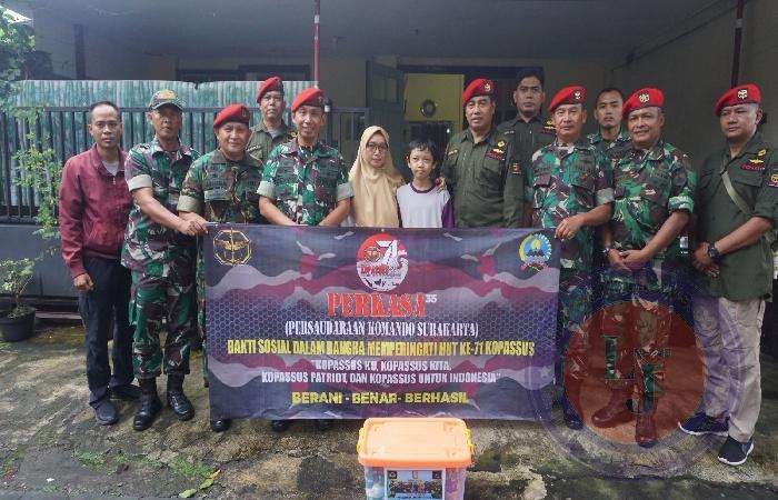 “Kegiatan Bakti Sosial ini dalam rangka memperingati HUT Ke-70 Kopassus yang diselenggarakan oleh PERKASA (Persaudaraan Komando Surakarta) ini merupakan kegiatan rutin yang dilakukan setiap tahunnya dan merupakan wujud perhatian kepada Sesepuh dan keluarga besar korp baret merah yang telah mendahului kita.”tuturnya.