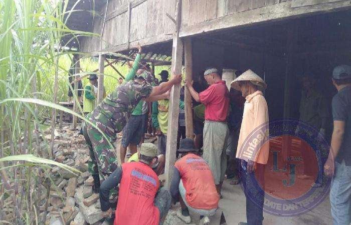 NGAWI lintasjatimnews.com – Demi mewujudkan Kemanunggalan TNI dan rakyat dan dalam rangka mendorong semangat kebersamaan masyarakat . Babinsa Pos Ramil Pitu Serda Wawan Sulistiyono bersama warga masyarakat melaksanakan karya bakti perbaikan rumah di Dusun Papungan Desa Papungan Kec Pitu Kab Ngawi, Jumat (21/04/2023).