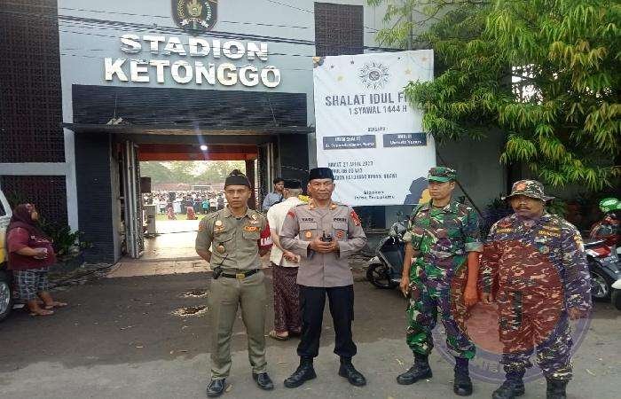 NGAWI lintasjatimnews.com – Guna menciptakan situasi kondisi yang aman dan kondusif, Danramil 0805/01 Ngawi Kapten Inf Kasi Beserta Anggota Babinsanya melaksanakan pengamanan Sholat Idul fitri di Stadion Ketonggo Ngawi, Jumat 21 April 2023.