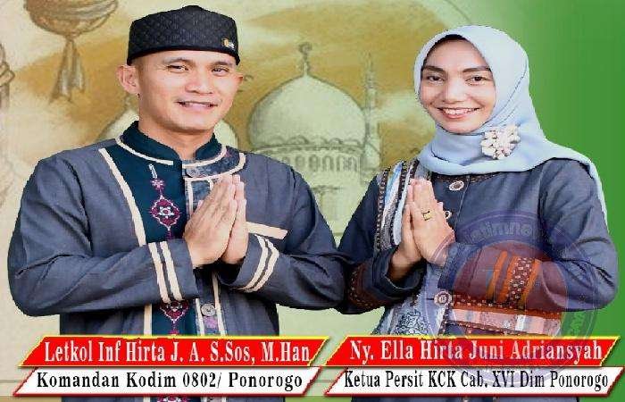 PONOROGO lintasjatimnews.com – “Assalamualaikum Warrahmatulahi Wabarakatu, saya Letkol Inf Hirta Juni Adriansyah, Komandan Kodim 0802/Ponorogo, mengucapkan selamat hari Raya Idul Fitri 1 Syawal 1444 Hijriyah tahun 2023 Masehi, semoga amal ibadah kita diterima oleh Allah Subhahu Wa Ta’ala. Mohon maaf lahir dan batin, wassalamualaikum warrahmatullahi Wabarakatu, “ kata Komandan Kodim 0802/Ponorogo, Letkol Inf Hirta Juni Adriansyah, S. Sos. M. Han.