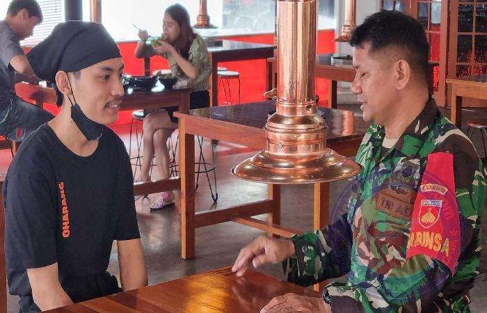 SURAKARTA lintasjatimnews.com – Dalam menjalin komunikasi antara aparat Komando kewilayahan dengan masyarakat bisa dilakukan di mana saja Seperti yang dilakukan Babinsa Kelurahan Tipes Koramil 03/Serengan Koramil 03 Serengan Kodim 0735 Surakarta Serka Sarmin melaksanakan giat Komsos dengan Bapak Handono (Chef Koki) Rumah Makan Korea Oharang di Jl. Bhayangkara no. 55 Kelurahan Tipes Kecamatan Serengan Kota Surakarta, Kamis pukul 09.00 Wib (27/04/2023).