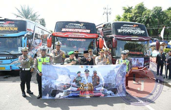 Program mudik balik gratis oleh Pemkab. Ponorogo tersebut memberangkatkan sebanyak 265 penumpang dengan menggunakan kendaraan bus sebanyak 5 buah. Tidak itu saja, guna kenyamanan para penumpang selama dalam perjalanan, dalam kesempatan tersebut juga diberikan bingkisan yang diserahkan secara simbolis kepada perwakilian warga yang melaksanakan mudik balik.