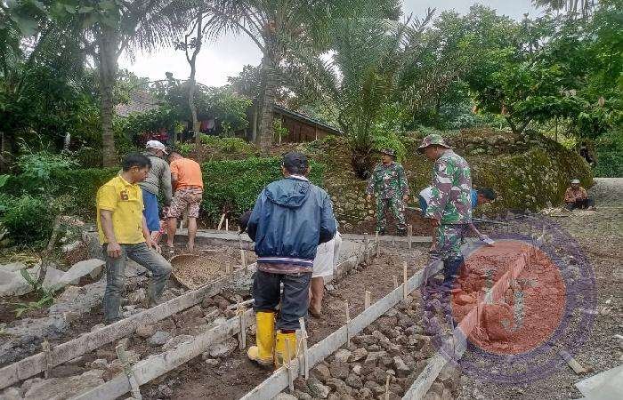 Terlihat semangat dan kekompakan antara anggota Koramil 22/Slogohimi dan warga, mereka bersama-sama bergotong royong dan saling bahu membahu dalam proses pembangunan rabat jalan yang dilaksanakan.