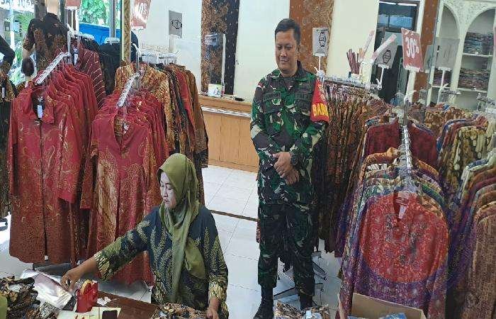 SURAKARTA lintasjatimnews.com – Babinsa kelurahan kemlayan Koramil 03/Serengan Kodim 0735/Surakarta Serda Catur Handoko komsos dengan pegawai batik danarhadi Ibu Handayani yang berada di wilayah kelurahan kemlayan Serengan Kota Surakarta, 01/05/2023)
