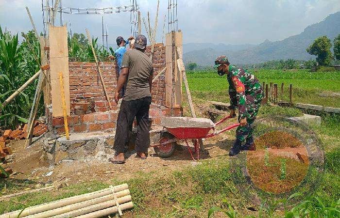 PONOROGO lintasjatimnews.com – Sertu Sunaryo, anggota Koramil Tipe B 0802/10 Slahung, Babinsa Gundik bersama warga desa binaan hari ini melaksanakan kerja bakti pembuatan penampungan air irigasi sawah di Dusun Gentong, Desa Gundik, Kecamatan Slahung, Kabupaten Ponorogo, Rabu (03/05/2023).