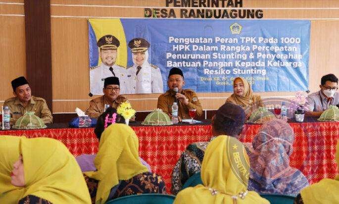 Hal ini disampaikan Bupati Gresik H. Fandi Akhmad Yani pada acara penguatan peran Tim Pendamping Keluarga (TPK) pada 1000 Hari Pertama Kehidupan (HPK). Dalam rangka percepatan penurunan stunting dan penyerahan bantuan pangan kepada keluarga resiko stunting. Kegiatan digelar di Balai Desa Randuagung Kecamatan Kebomas, Senin (8/5/2023).