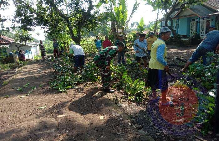 Koramil Kuripan Mempelopori Kerja Bakti Bersihkan Jalan Desa