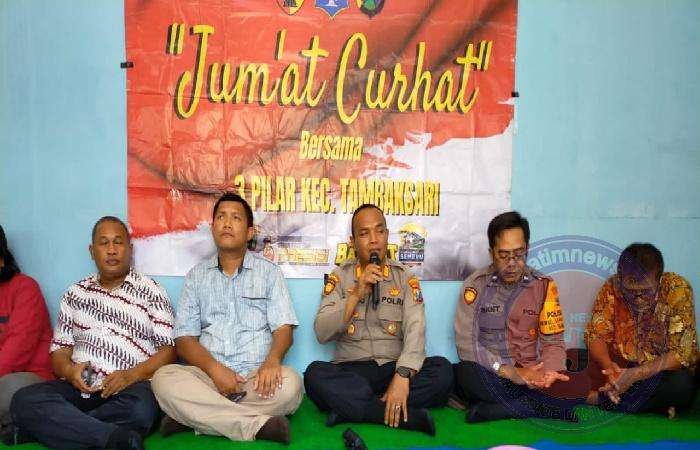 Kapolsek Tambaksari Kompol Ari Bayuaji.,S.E.,S.I.K.,M.Si melalui Wakapolsek Tambaksari Akp Widodo.,S.E., mengatakan melalui kegiatan inovasi jumat curhat ini bertujuan untuk mengetahui kondisi masyarakat secara langsung di lapangan, dan bisa mendengarkan keluhan, pertanyaan dan masukan terkait harkamtibmas, Serta menyerap aspirasi dari masyarakat khususnya warga Kec. Tambaksari.