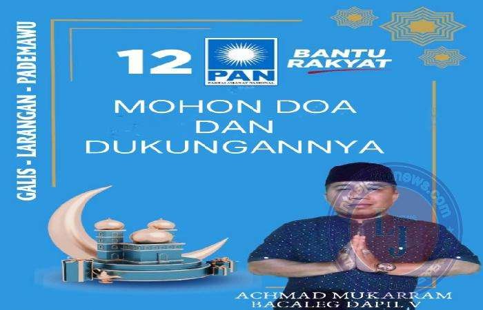Pria yg akrab disapa mas Mukarram itu berangkat melalui partai Amanat Nasional(PAN) dengan daerah pemilihan( Dapil V)yakni kecamatan GALIS, LARANGAN, PADEMAWU
