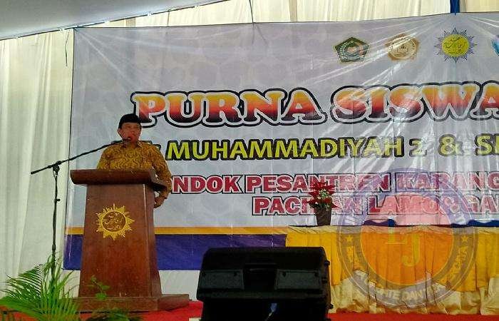 Resepsi purnasiswa terpadu tahun pelajaran 2022/2023 terasa Istimewa karena dihadiri langsung Ketua Majelis Dkdasmen PWM Jatim, Dr. Khozin, M.Si., Ketua PDM Gresik, H.M. Thoha Mahsun, S.Ag., M.Pd.I yang sekaligus sebagai wali santri, K.H. Drs. Hakam Mubarok Lc., M.Pd., Pimpinan Ponpes Karangasem, dan Sekretaris Majelis Dikdasmen PDM Lamongan, serta sejumlah pejabat Pimpinan Cabang Muhammadiyah Paciran.